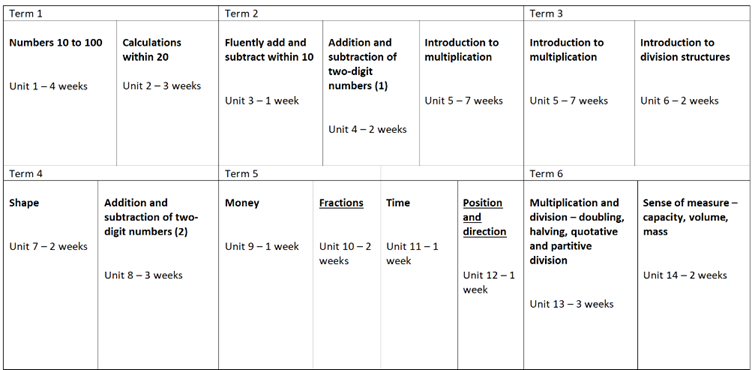To further support learning of the fundamentals of maths, we also use Mastering Number in KS1, in addition to our maths curriculum. Mastering Number aims to secure firm foundations in the development of good number sense for all children from Reception through to Year 1 and Year 2. The aim over time is that children will leave KS1 with fluency in calculation and a confidence and flexibility with number. Attention will be given to key knowledge and understanding needed in Reception classes, and progression through KS1 to support success in the future.