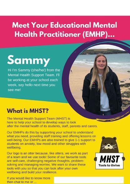 As a school we were lucky enough in September 2024 to invite Sammy to be part of our Mead Vale Community. She is in sight every Thursday and supports the school not only through working with 1:1 on an individual basis but also by promoting the 5 ways of well being through assemblies.